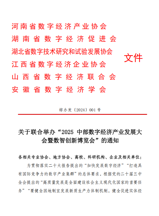 关于联合举办“2025中部数字经济产业发展大会暨数智创新博览会”的通知